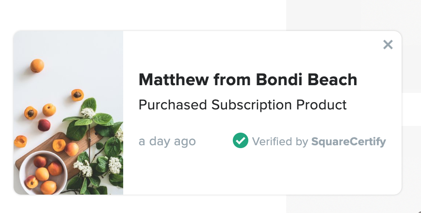 SquareCertify - Sales Social Proof Pop-Up for Squarespace