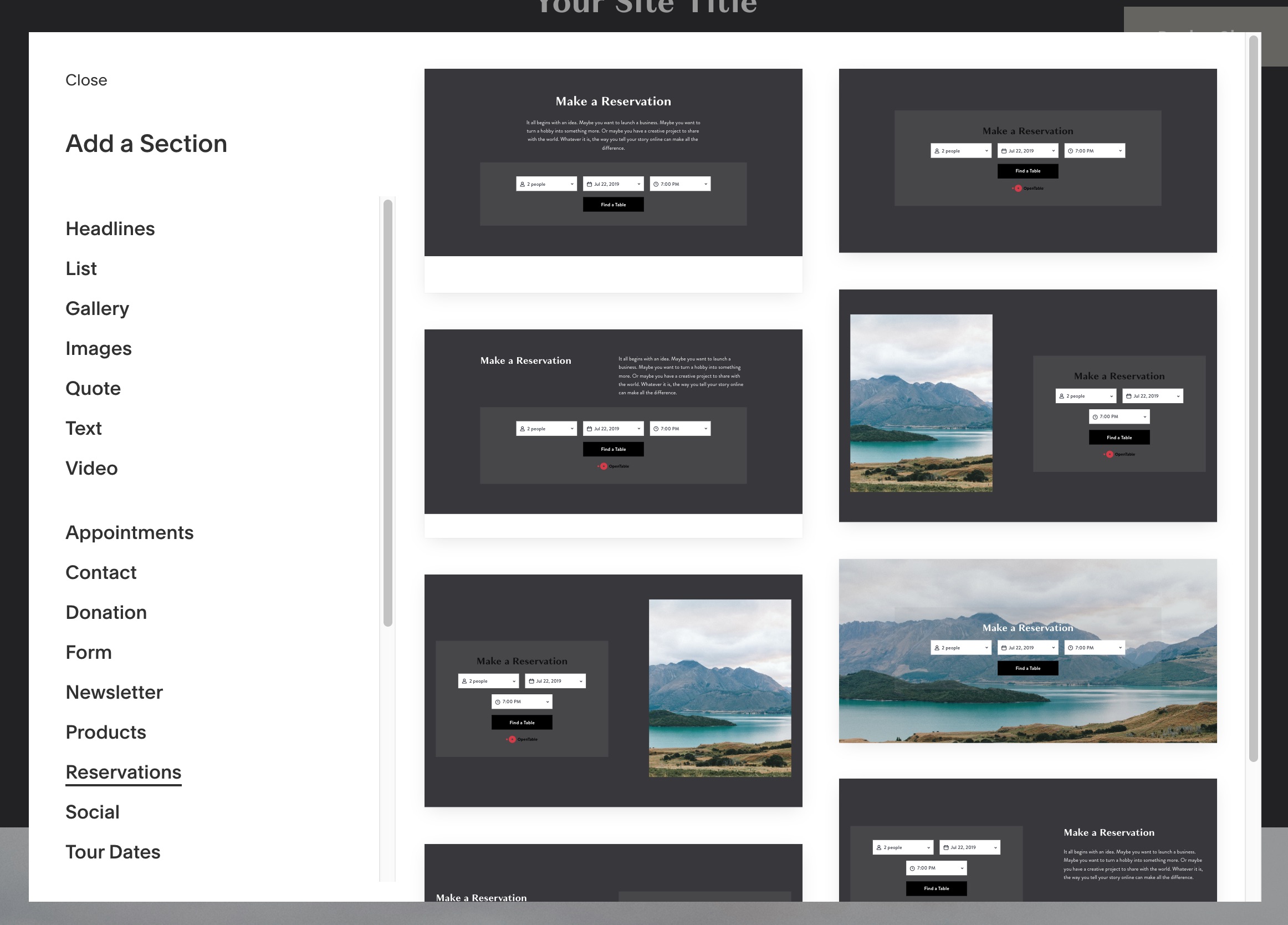 In 7.1, ‘Sections’ are website components that have predefined layout and structure. They let you easily add advanced features to a page (e.g. an ‘Appointment Booking’ section). This is a new concept that should make adding site features faster. There’s also a really nice new Page creator, with better options for different page types.