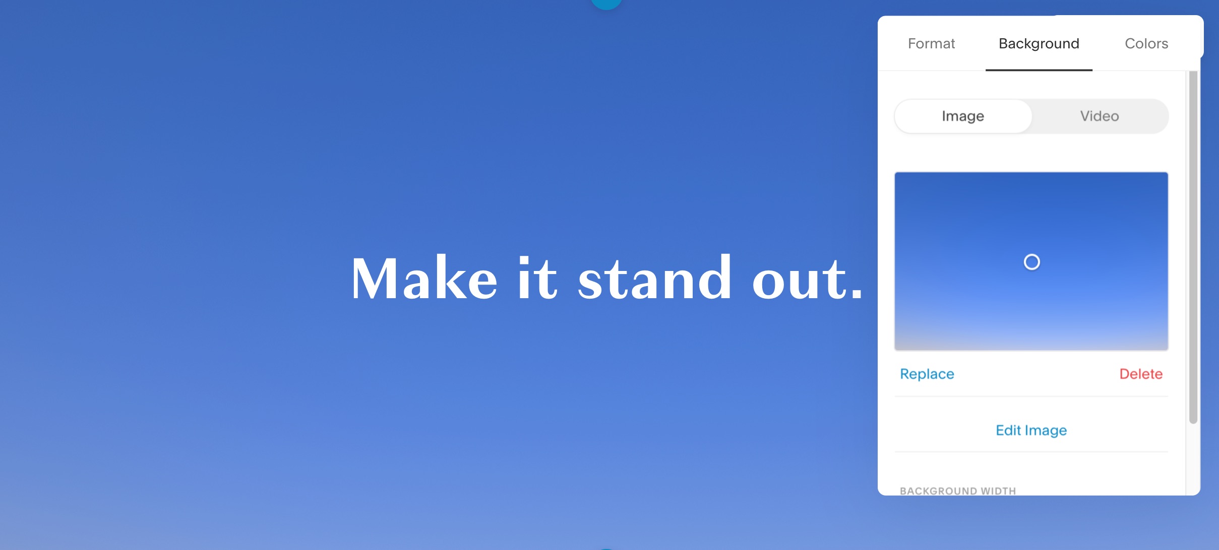 While we’re looking at the new Section customization settings, you’ll also notice a great new feature of 7.1. This version of Squarespace adds a background image picker – so you can set a full-bleed background image or video for each individual section.
