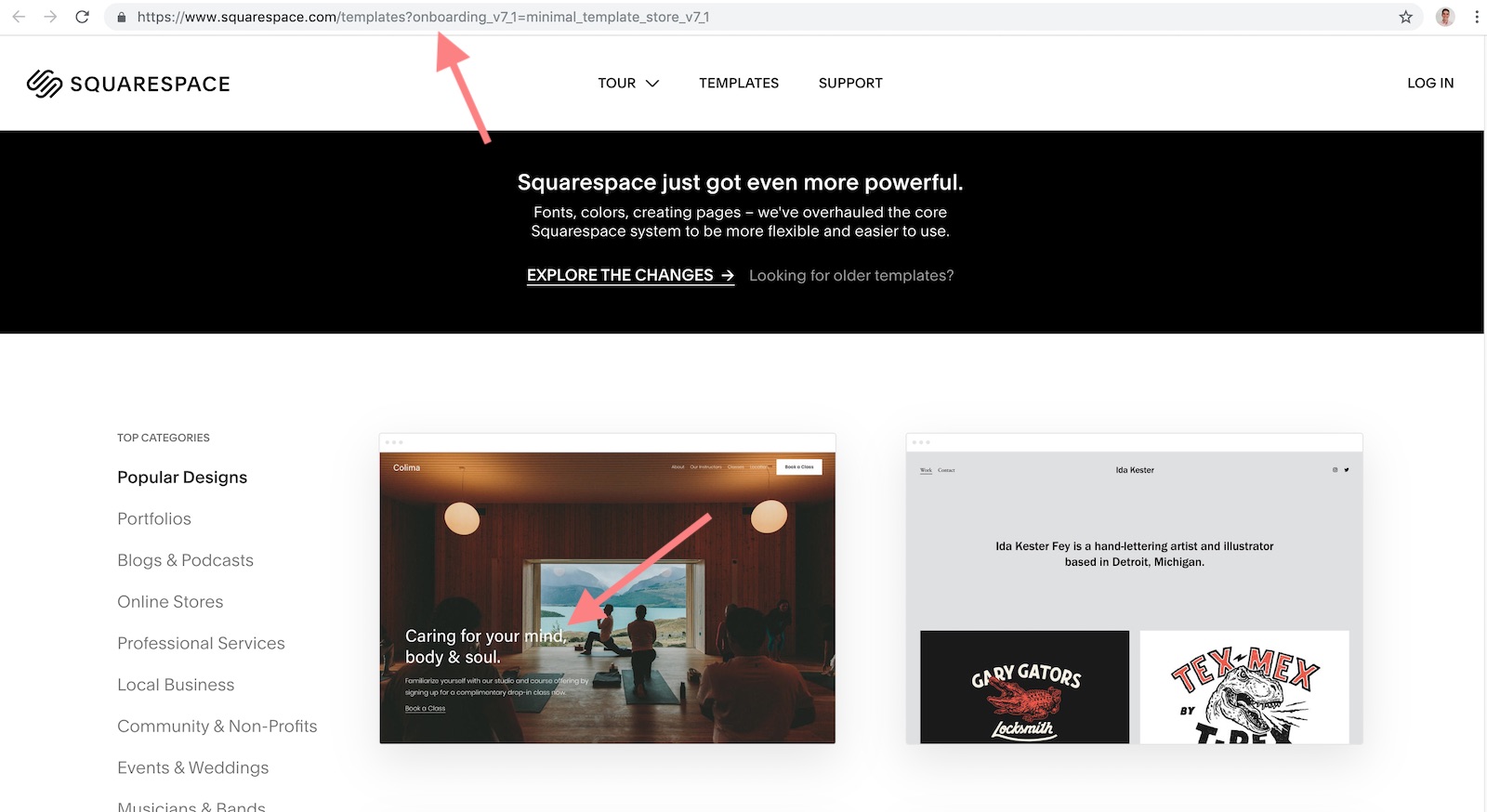 You need to go to the Squarespace 7.1 template store and choose one of the templates from there.