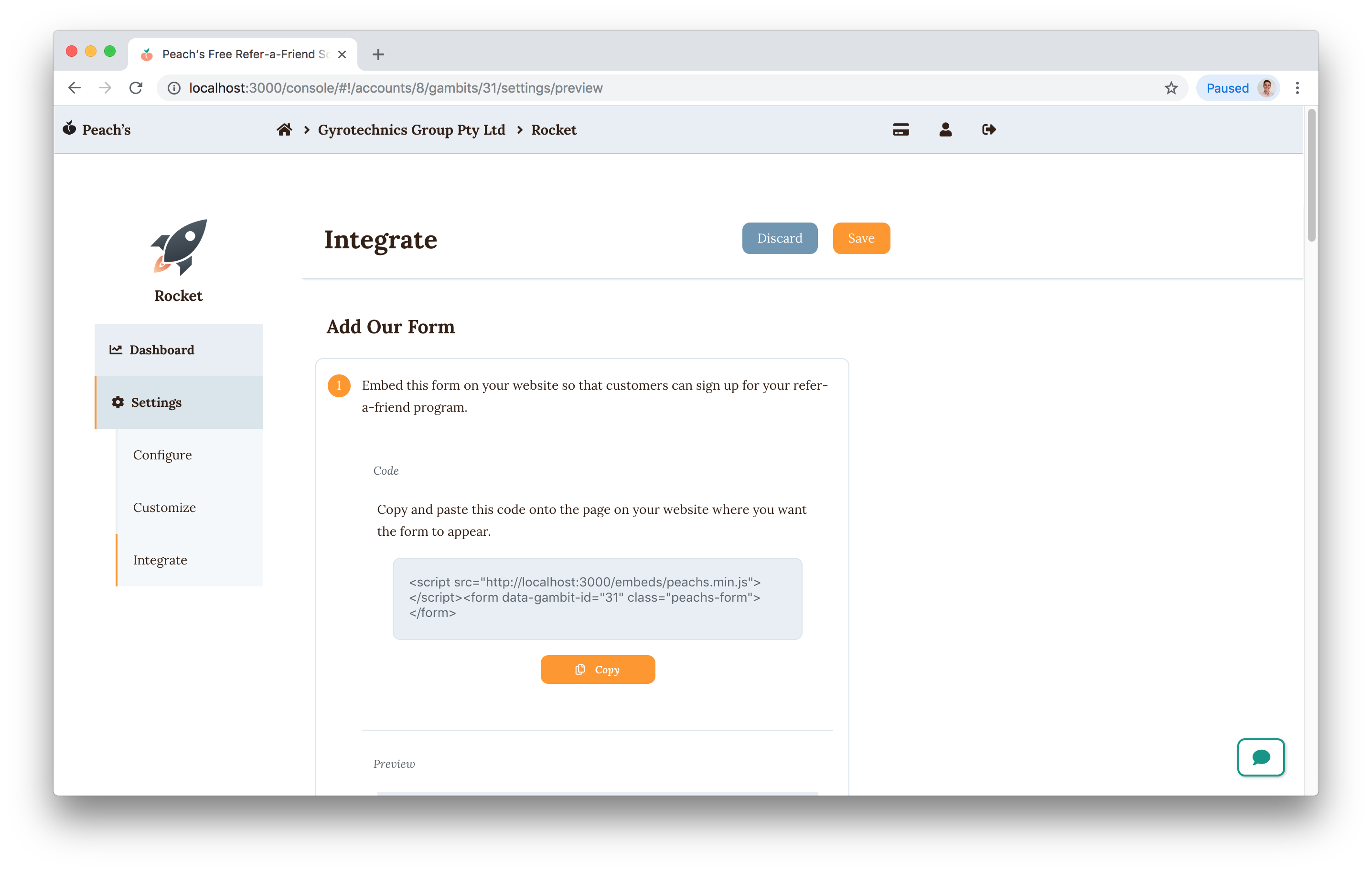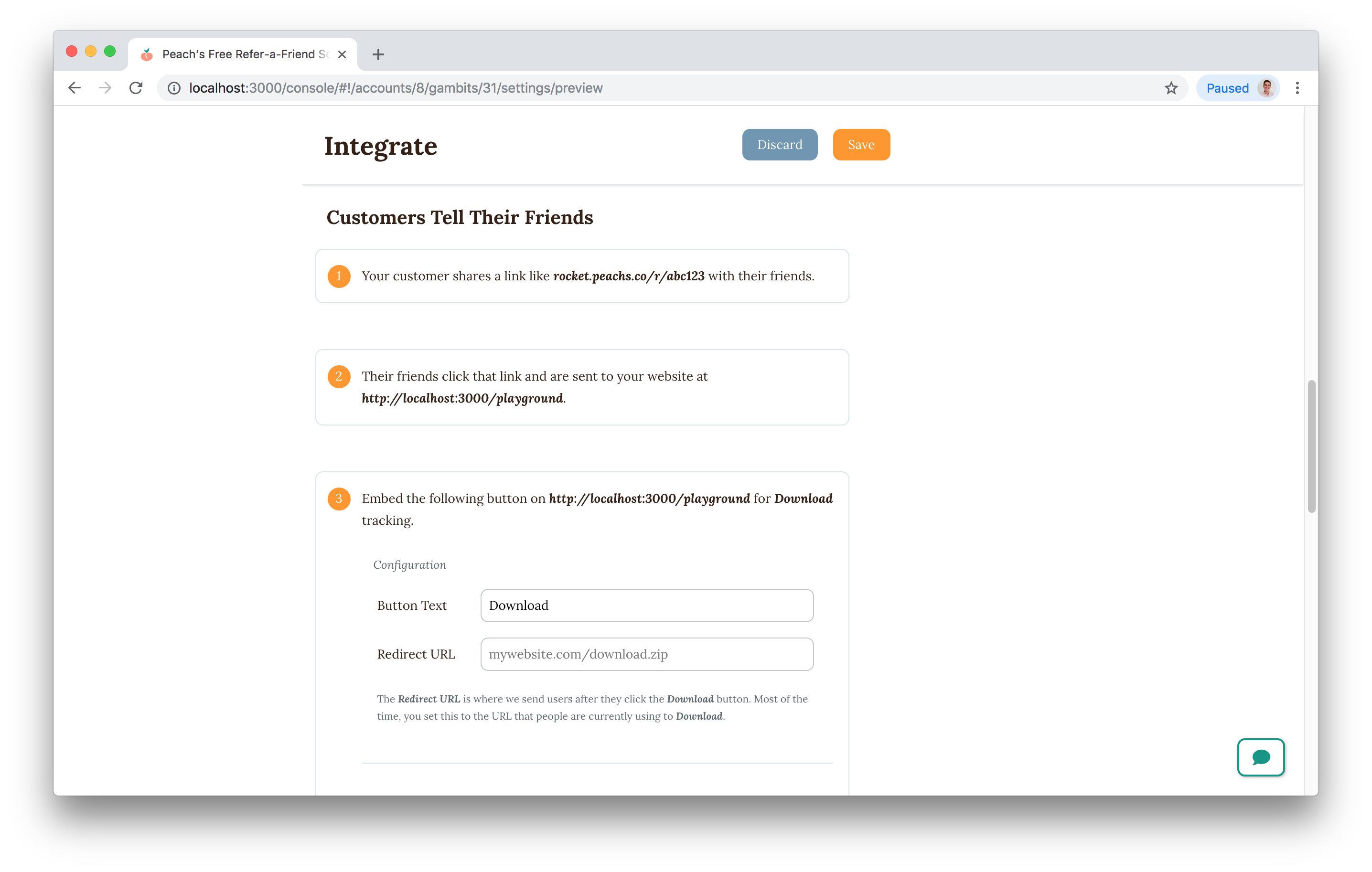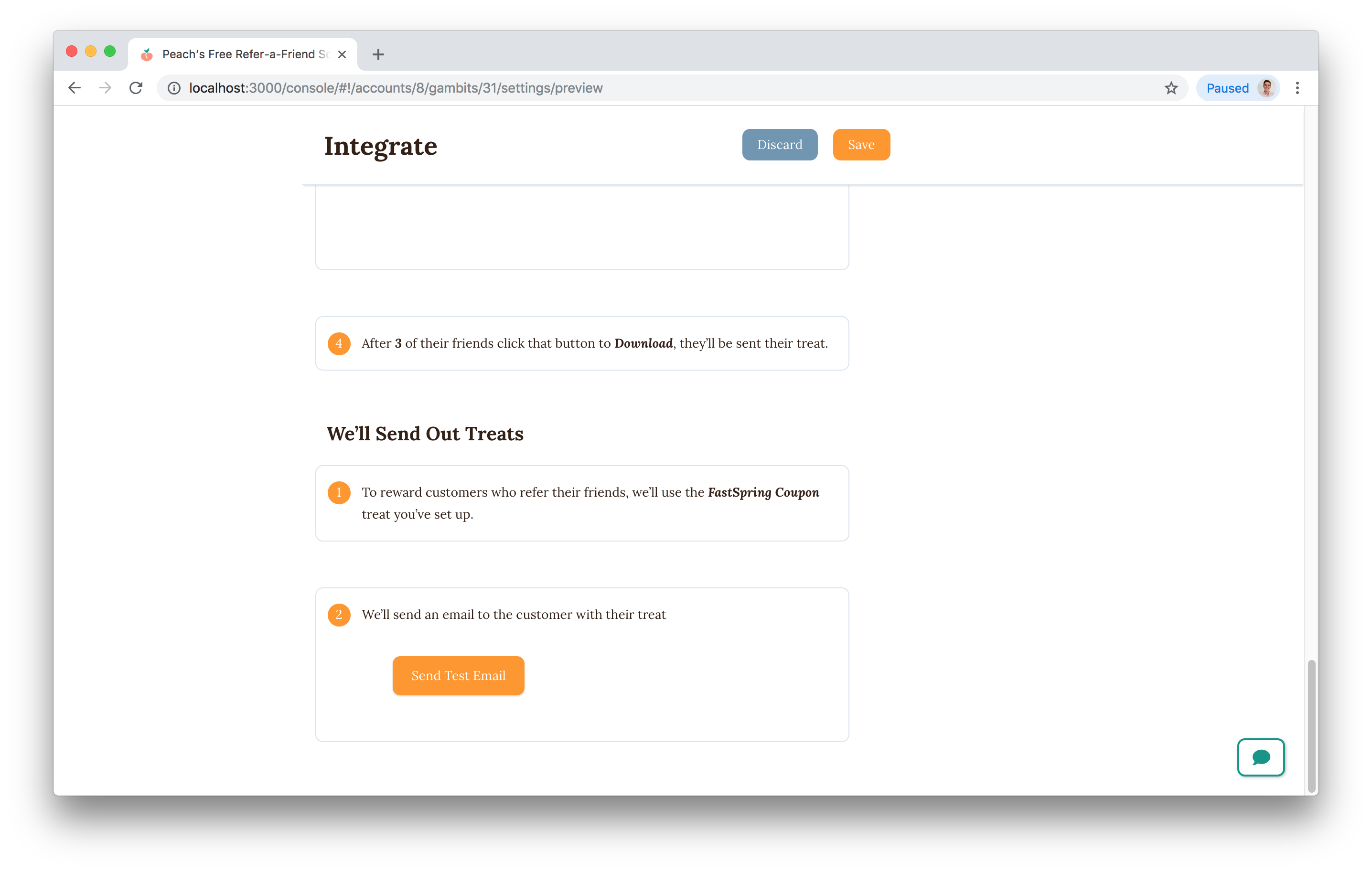 Connect your Peach’s refer-a-friend program with the services you use to distribute your product. This is how successful referrers are rewarded.