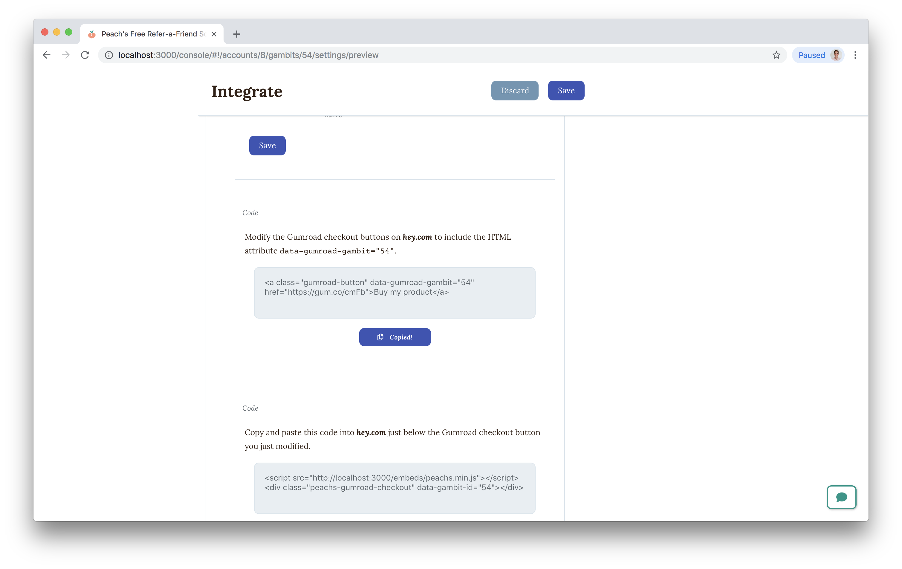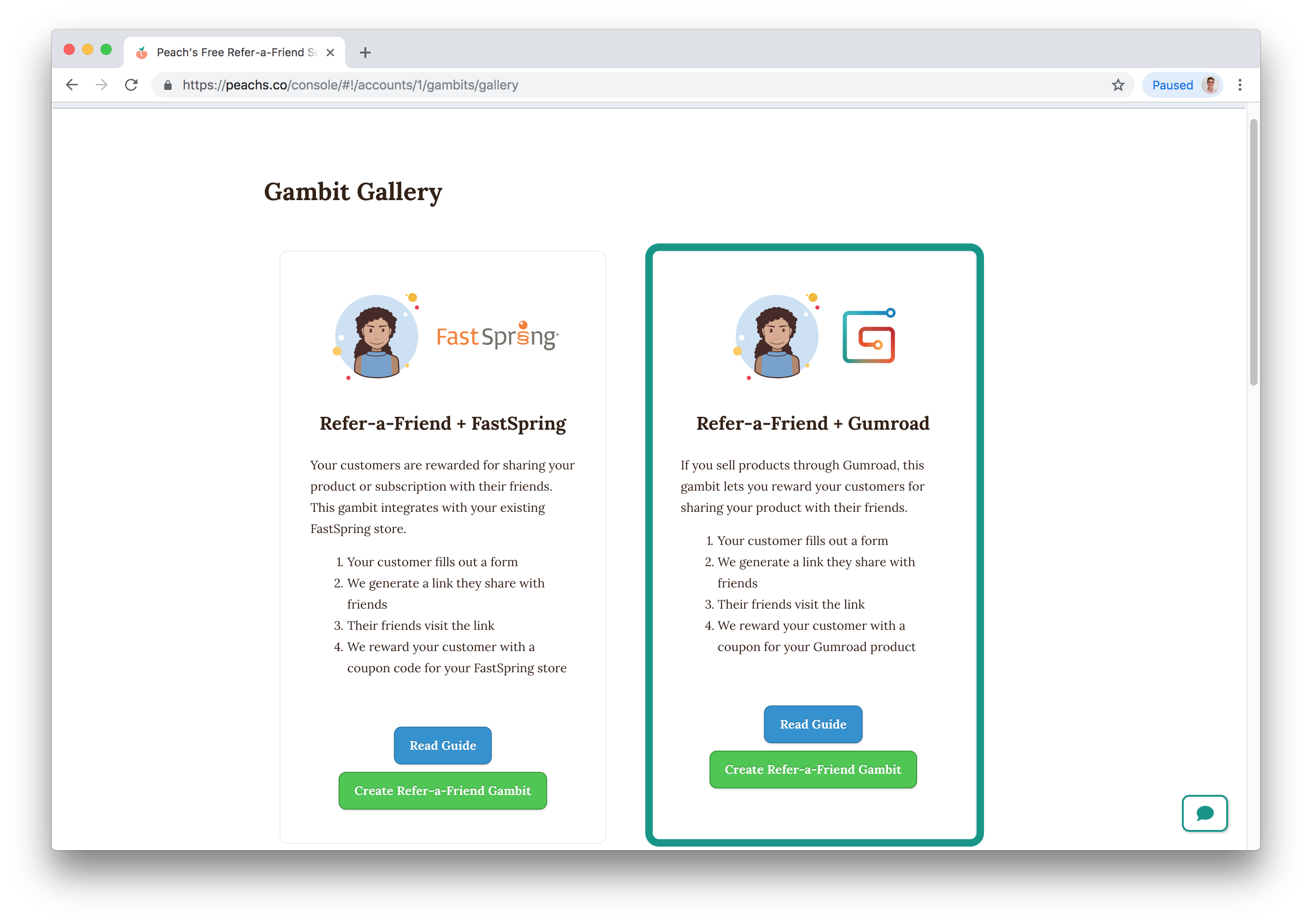 Modify your Gumroad buttons so that Peach’s knows they are used for a refer-a-friend gambit.
