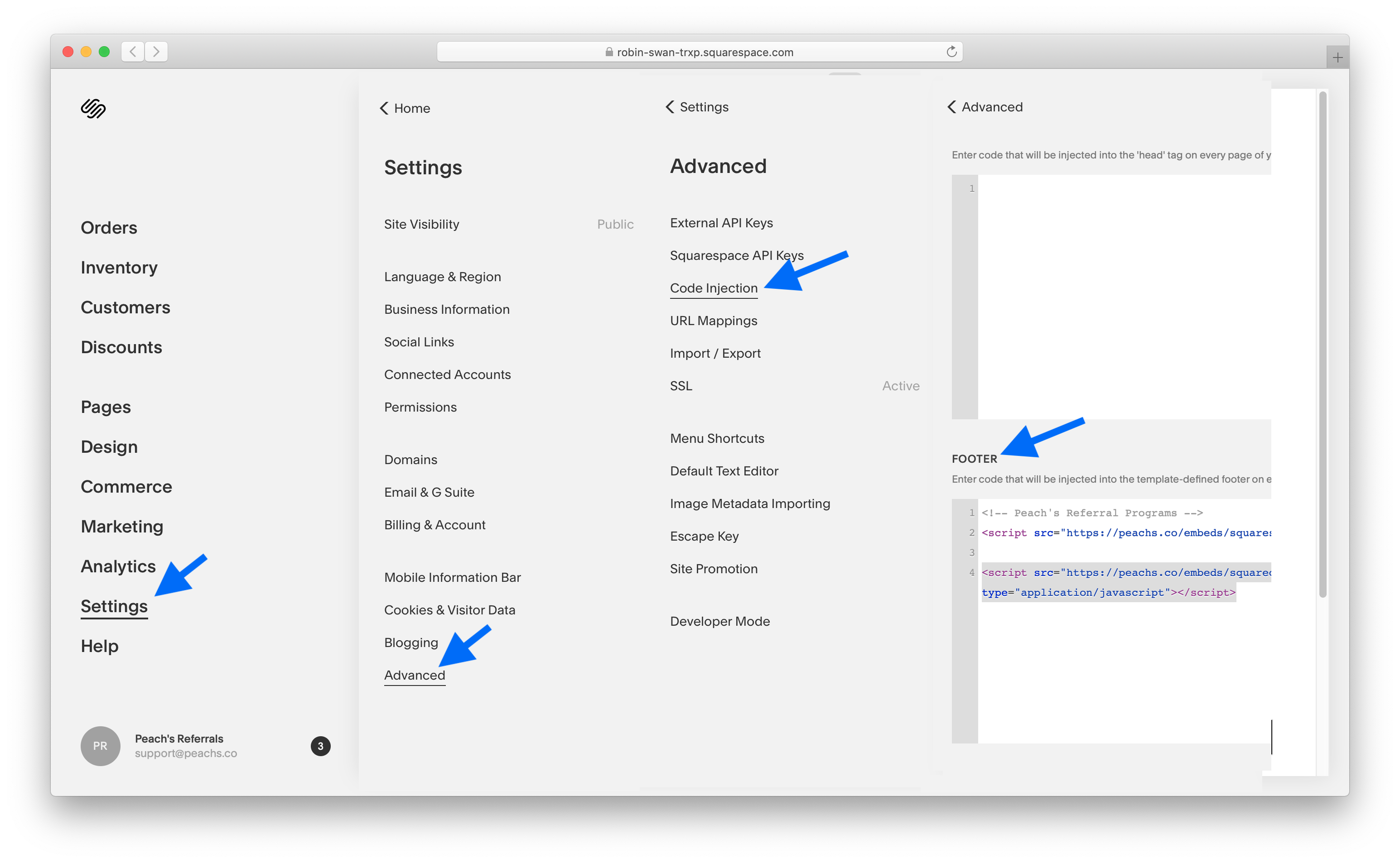 Then, in your Squarespace admin dashboard, navigate to your Code Injection section.