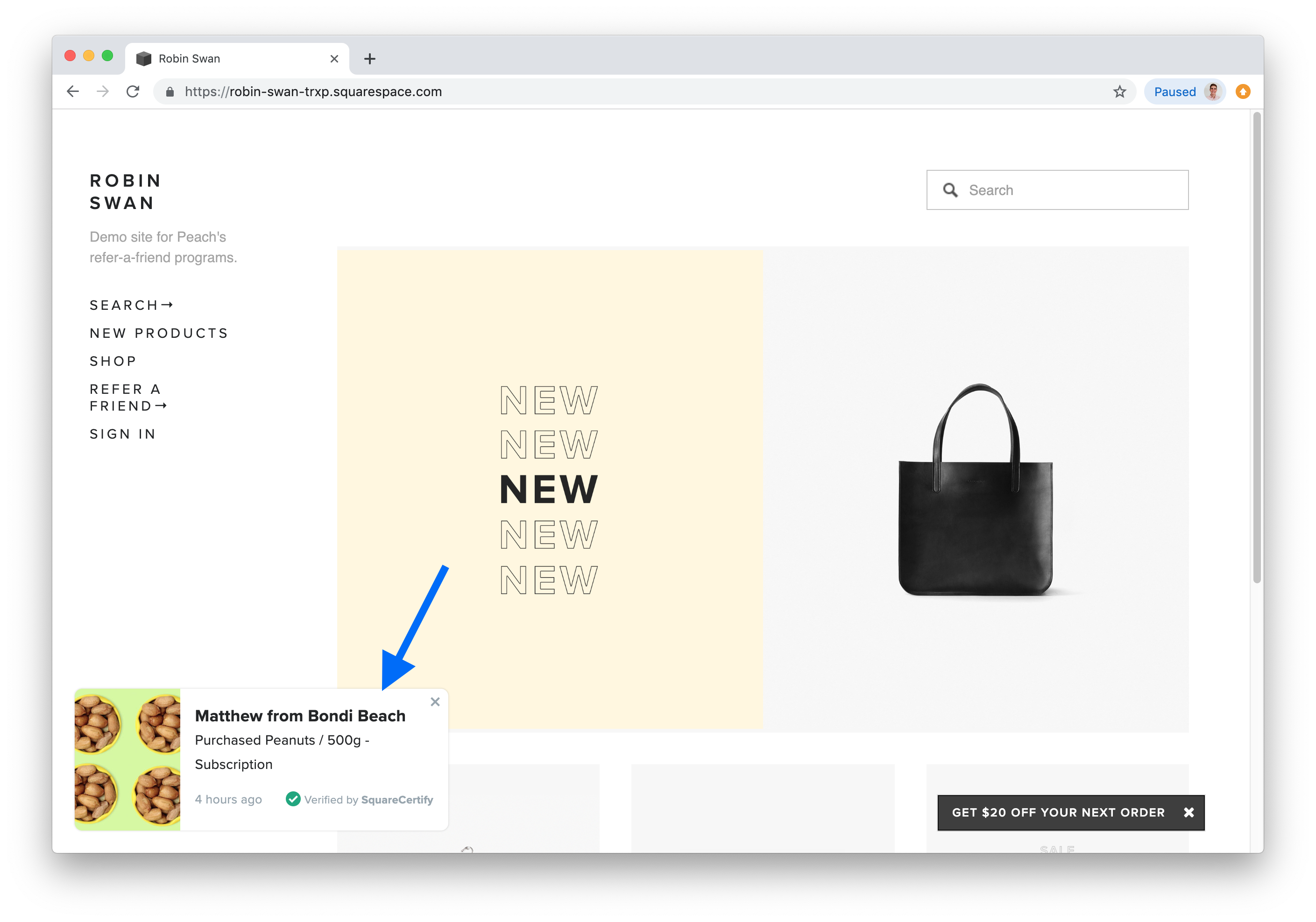 SquareCertify - Sales Social Proof Pop-Up for Squarespace